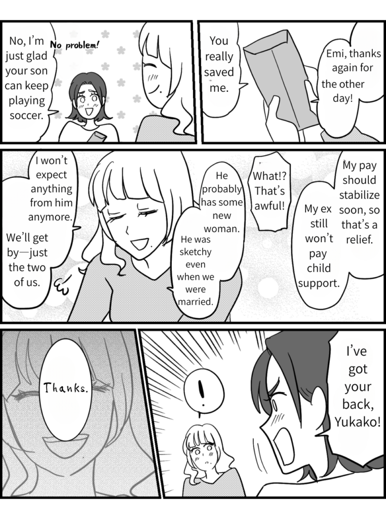 This happened a while ago. At my new part-time job, I became close with Yukako Hotta, a single mom. Even after she quit, we stayed friends. When Yukako struggled without child support from her ex, I lent her $100, thinking I might never get it back. But as soon as she got paid, she returned it right away.