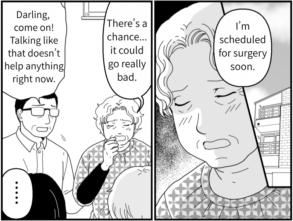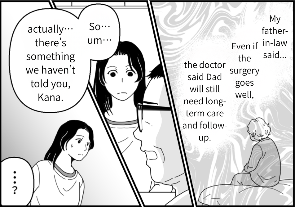 I live with my husband, Masato, and our three kids—Yuma (7th grade), Rei (5th grade), and Tact (2nd grade). Life’s a blur with both of us working, but Masato’s always hands-on with the kids. Then one day, we got word that my mother-in-law had been diagnosed with a serious illness. Being an only child, Masato really has no choice but to step in. Until now, we’ve had a comfortable, slightly distant relationship with his parents—but that might be about to change.