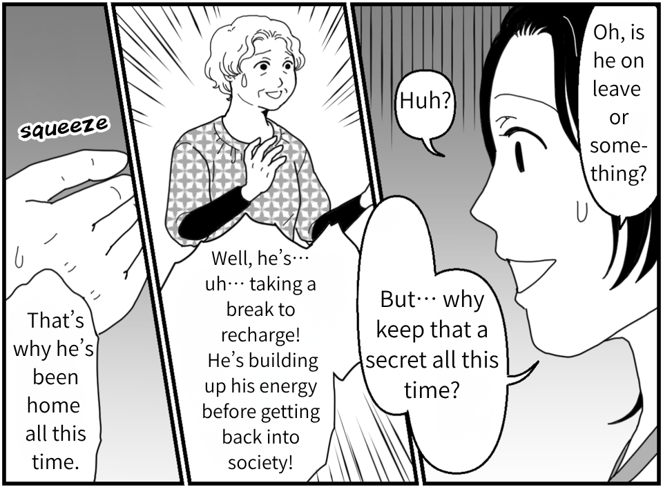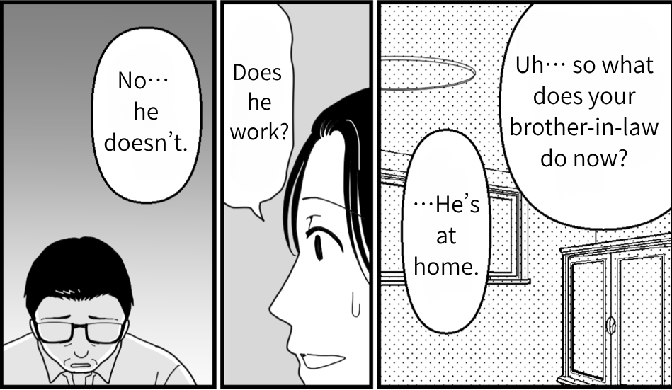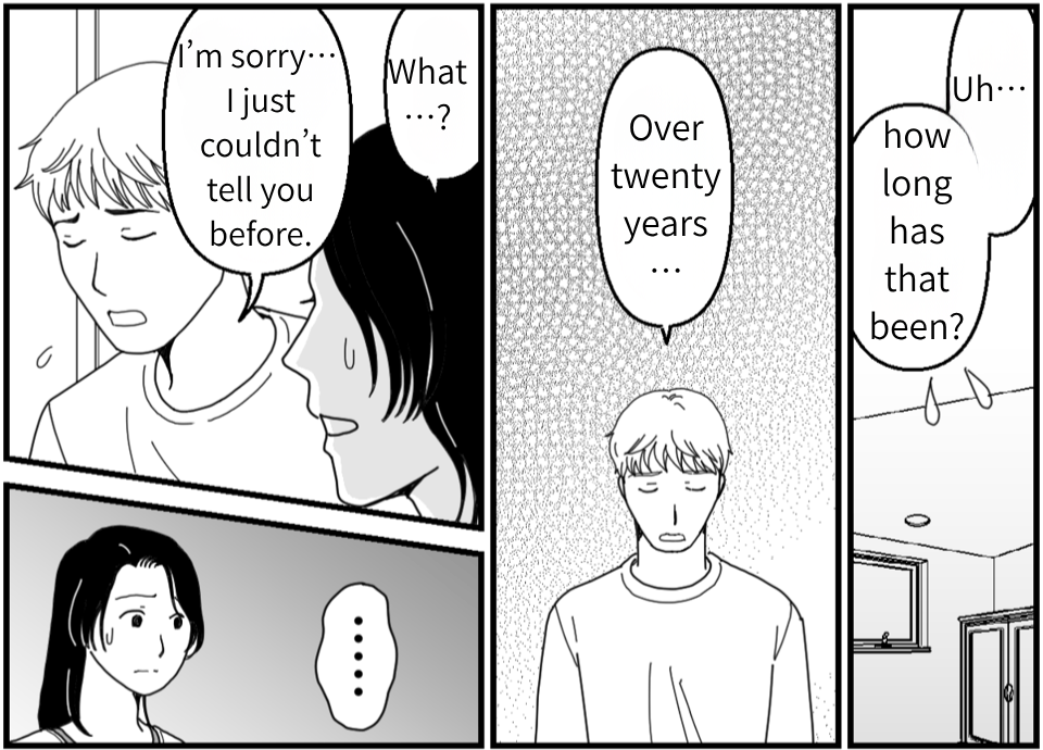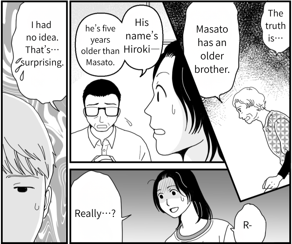 How could Masato have kept that from me all this time? And he doesn’t even work—he just stays home, “saving his energy to go out into the world someday”? Isn’t that what people call a shut-in? My thoughts were spinning, and even Masato’s apology—his quiet “I’m sorry”—barely registered.
