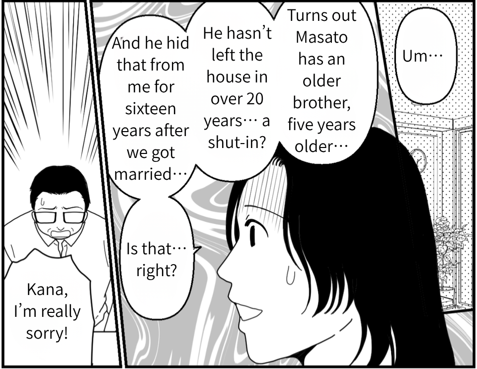 I’m Kana. I live with my husband, Masato, and our three children—Yuma (13), Rei (10), and Takuto (7). We’re a lively, happy family, and I often think how lucky I am to have married him. But one day, everything changed. My mother-in-law was diagnosed with a serious illness, and when my in-laws came over to explain her condition, they told us something shocking: Masato, whom I’d always believed to be an only child, actually had an older brother who’d been shut in at home for over twenty years. I couldn’t process what I was hearing.