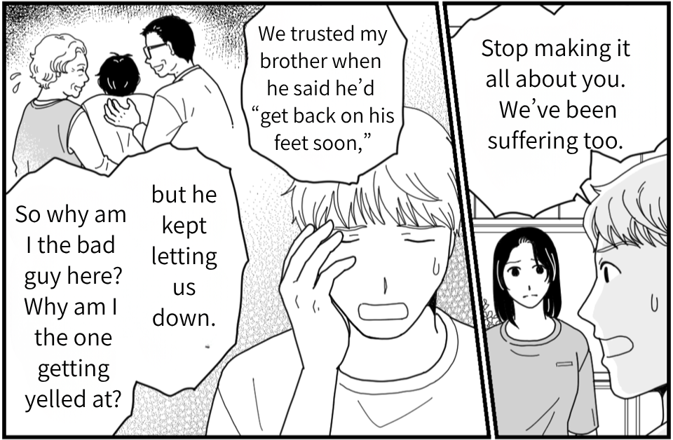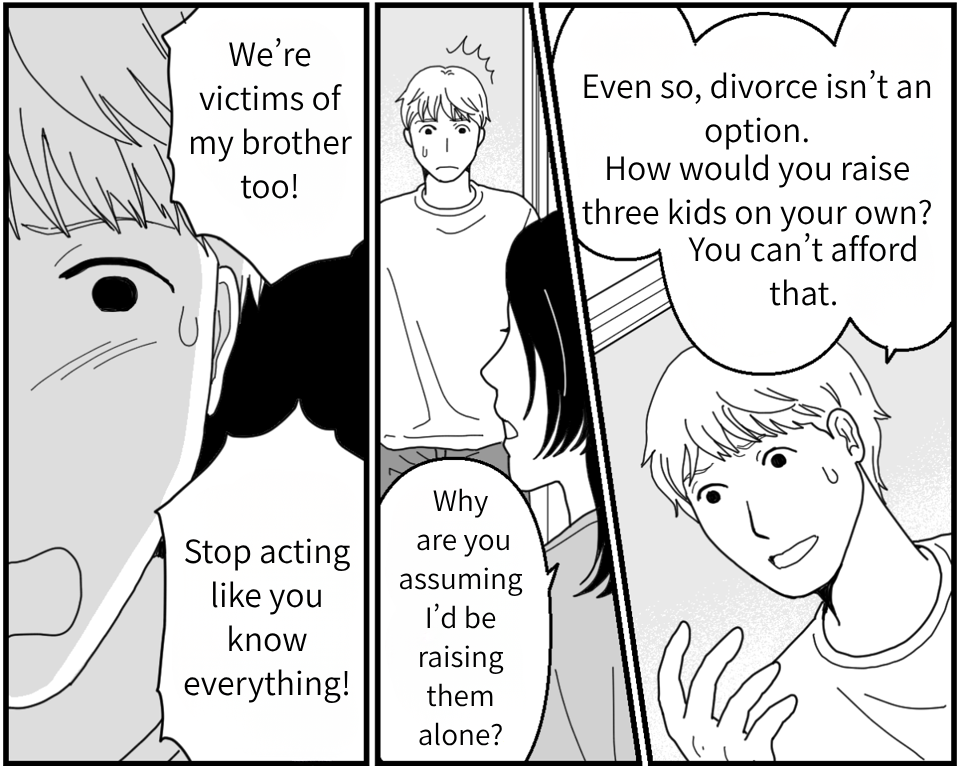 Then one day, my mother-in-law was diagnosed with a serious illness. That’s when Masato told me he had an older brother who’d been shut away from the world for more than twenty years. His parents and Masato had hidden it from me all along, deceiving me with practiced ease. When I called my mother-in-law to ask what we should do next, she blew up at me—as if she were the victim in all this.