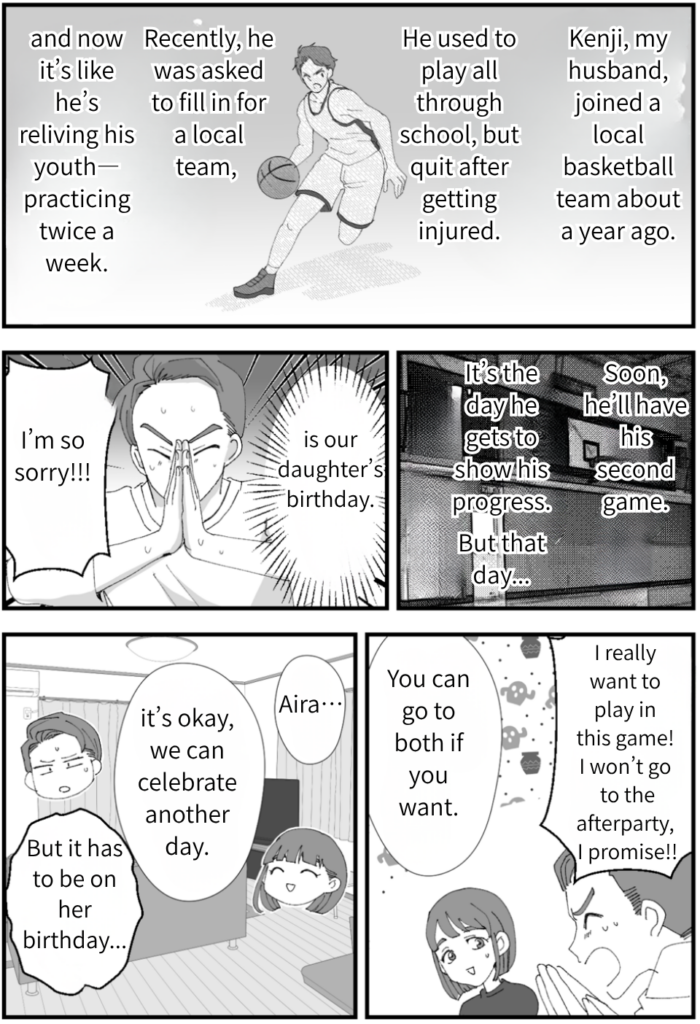 Recently, my husband found a new hobby. I always knew he used to play basketball when he was a kid, but lately he’s joined a local adult team. It’s a little lonely having less family time, but seeing him so happy makes it worth it. Both Aira and I cheer him on wholeheartedly.