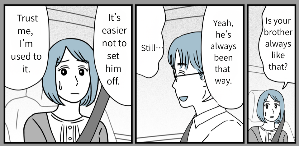 My in-laws are wonderful people, and my sister-in-law Sanae is sensible and down-to-earth. But Kosuke—my brother-in-law—has always been… difficult to understand. His words and actions often make no sense. For Kazuma, though, it’s just something he’s gotten used to. After all, he’s dealt with his brother since childhood. I can still picture him smiling awkwardly, brushing it off like it was no big deal.