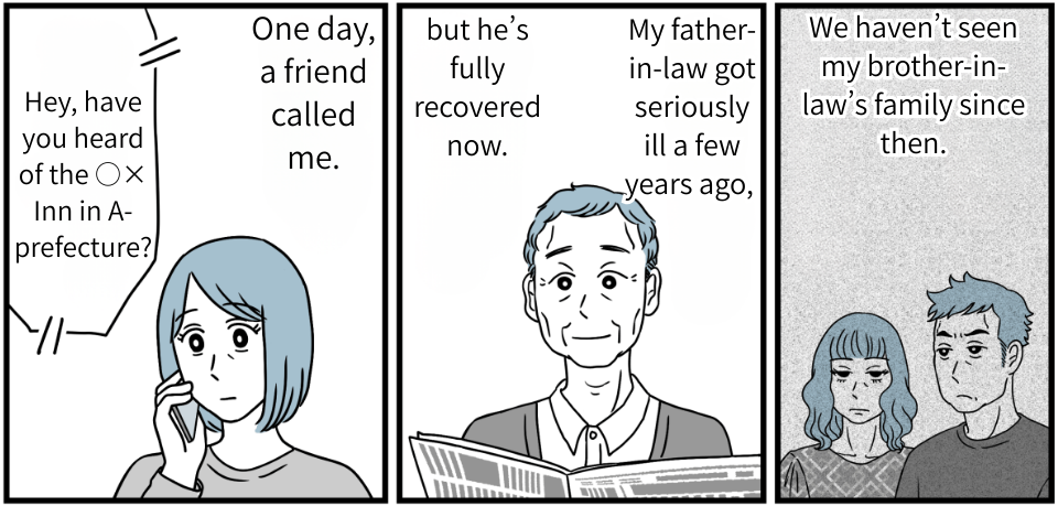 I’m Ayumi. I live with my husband, Kazuma, and our three kids — 3rd grade, 1st grade, and preschool. We’re a family of five. His parents live about an hour away by car, so we visit every now and then. Kazuma is the middle of three siblings — his older brother Kosuke, and his younger sister Sanae. And let me just say it… I cannot stand my brother-in-law.