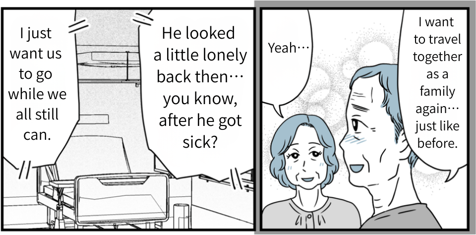 My mother-in-law is thinking about my father-in-law, who went through a serious illness. And my husband can’t ignore her feelings either. I could feel how much both of them were trying. So… what if I just endured it? If all of this could be fixed — if everyone could be happy — just by me putting up with them for a little while… Should I shift gears, swallow my discomfort, and try to enjoy the trip anyway?