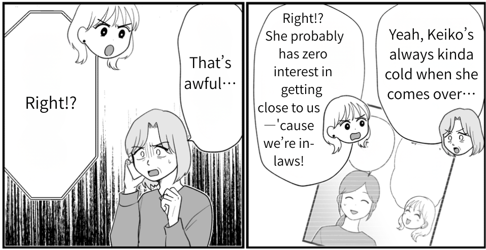 Whenever we visit their place, Rin, who’s an only child, has the best time playing with her older cousins. She lights up around them. But no matter how often I invite my brother’s family to hang out, they cancel on us at the last minute almost every time. Even so, I decided to stop by and drop off some treats… only to find out the “she’s sick so we can’t play” excuse was a lie. Seeing how cold Keiko always is, I couldn’t help thinking she might be the real source of all the trouble.