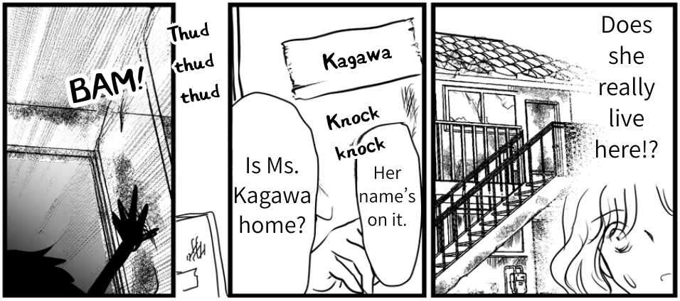 Kagawa lives in an apartment that looks practically abandoned. When I visited, the place was a disaster — and she screamed at me until I ran out.