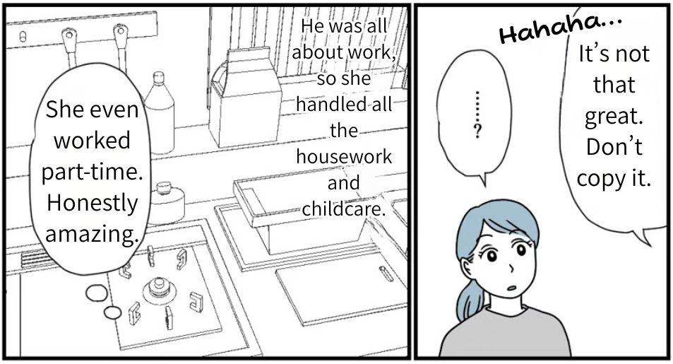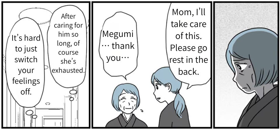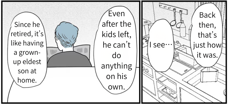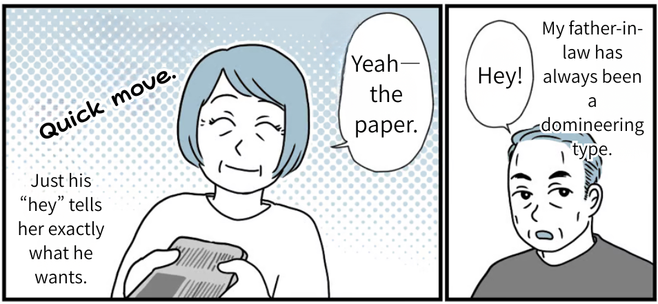 I’m Megumi Nishida, a mom of two. I’m married to Atsushi, and we live near his parents. My father-in-law was very old-school—the classic domineering husband type.