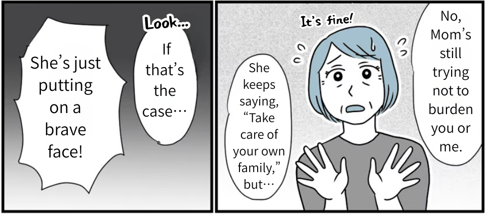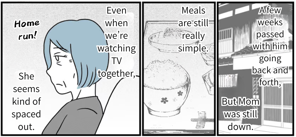 This happened a few years ago. I’m Atsushi Nishida. My dad suddenly collapsed from an illness, and after months of fighting it, he passed away. My mom had always been with my dad, so being alone all of a sudden… there was no way she wasn’t lonely. As the eldest son, I had to stay close and support her. That’s what I thought, and I started going over to my parents’ house almost every day, but…