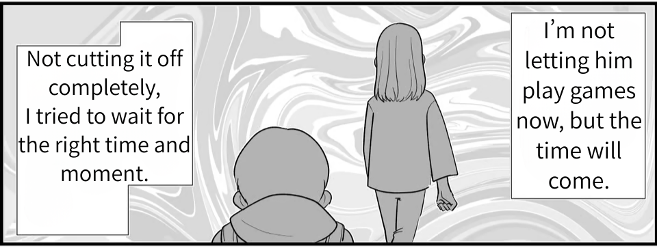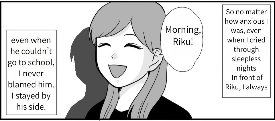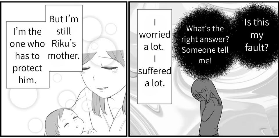 I believe protecting your child is a parent’s responsibility. Teaching them how to deal with all the temptations in the world is part of that responsibility too. That shouldn’t be wrong—so why won’t my in-laws or my husband understand? The harder I try to raise Riku, the more it feels like he’s closing his heart to me. Even so, no matter how much a child tries to pull away, a parent must never let go. We have to hold on—firmly. So no matter what anyone says, I won’t let go of Riku’s hand. I’ll stay right by his side, watching over him more closely than anyone else.
