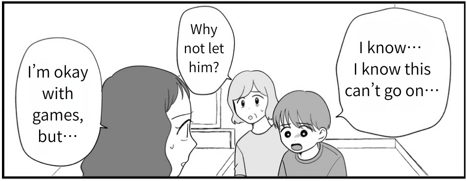 Little by little, I began to understand why he couldn’t go to school. He probably couldn’t keep up with what his classmates were talking about at all. And on top of that, he was forbidden by his mother from getting that information, which may have made everything feel joyless to him. That feeling of “nothing is fun” might have been what stopped his feet from carrying him to school.