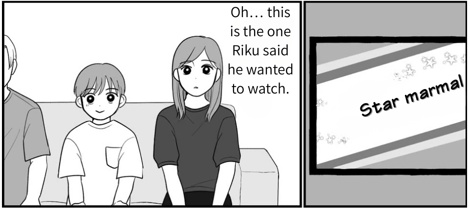 The anime Riku wanted to watch as a family was one he’d asked to see before. We had a rule: one episode a day, and only approved shows. Because of that, I really wasn’t keen on the idea. Still, if it helped Riku move forward—even a little—I agreed.
