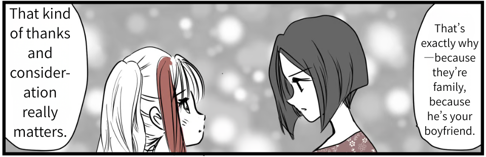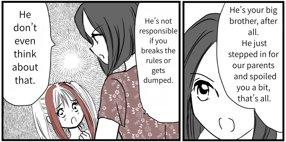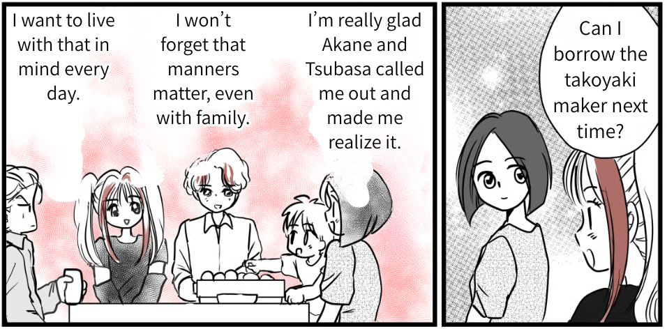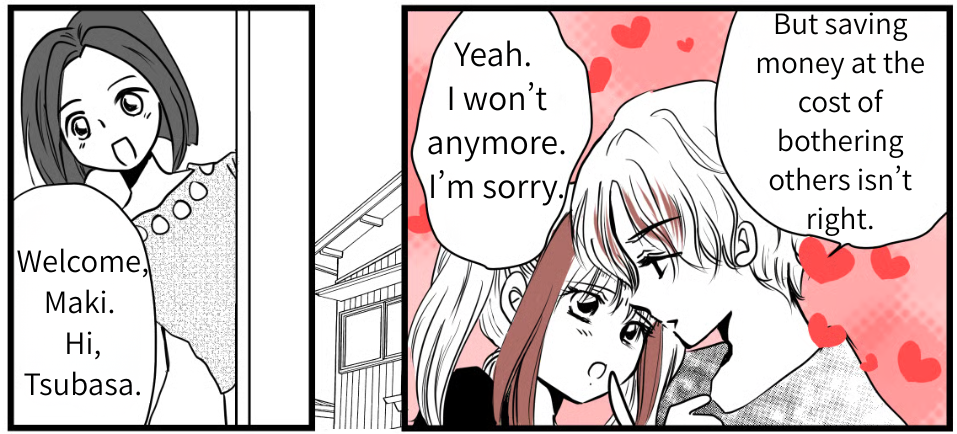 Deep down, I think I already knew that Akane was uncomfortable with how selfish I’d been. But I probably brushed it off, telling myself, “My brother said it’s fine,” or “They both work, so they must have money.” I leaned way too much on my brother’s kindness and on Tsubasa’s, too.