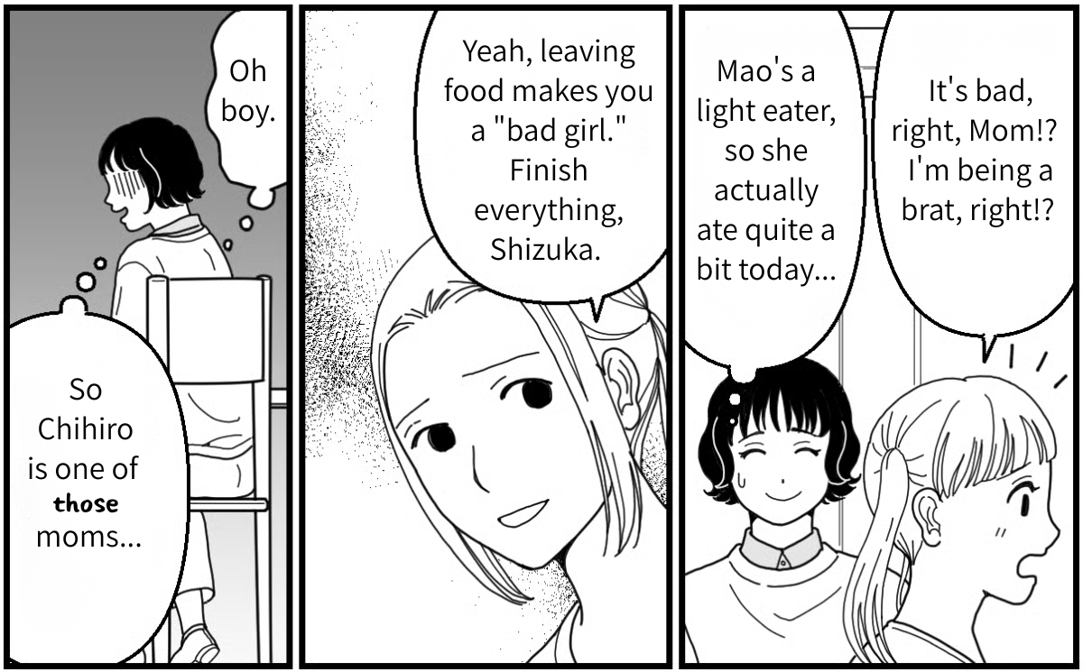 I’m Kasumi, and I’m raising my five-year-old daughter, Mao. Today, I’m at a diner with Chihiro and her five-year-old daughter, Shizuka, whom we know from extracurricular lessons. Even though Mao and Shizuka go to different kindergartens, they’ll be attending the same elementary school. We’ve been hanging out at the park after lessons to get to know each other better, but this is our first time actually going out on a weekend to grab a meal together. I’m starting to realize, though, that the closer you get to someone, the more you notice how much your values differ…