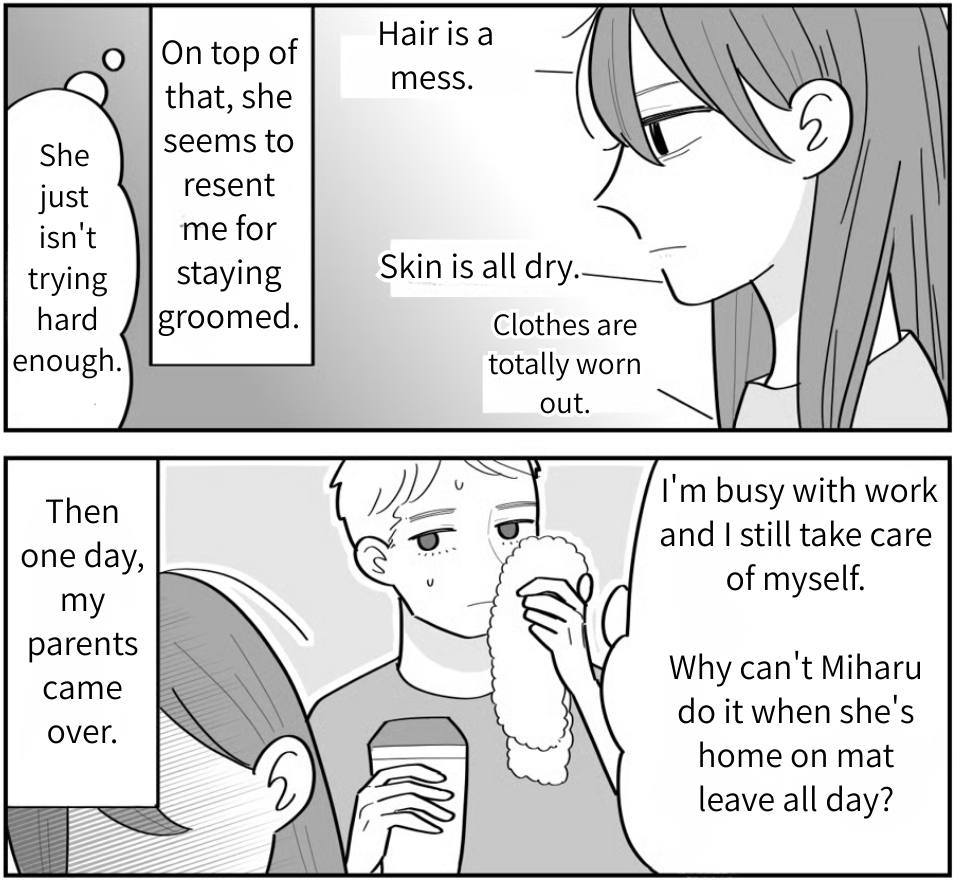 I’m Tomoya. My wife, Miharu, and I have a six-month-old daughter, Chieri. When she was born, I made a vow to always be a “cool dad,” so I started going all out with my grooming and workouts. I’m talking a serious skincare routine, daily runs, and weekly soccer games. Plus, a monthly trip to the salon is a total must. If I do say so myself, I’ve managed to stay looking pretty sharp. But then, my own mother called me out and told me I had it all wrong…