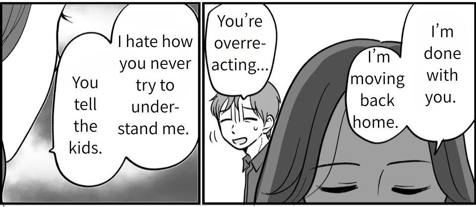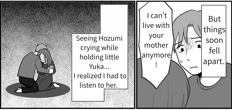 I’m Tomohiko, a 42-year-old office worker. I live with my wife, Hozumi, and our two kids—a daughter in 9th grade and a son in 7th. We’re your typical, happy family. But there’s one major issue: my mother and Hozumi do not get along. We had a huge blow-up over the family grave visit—specifically, whether my mom should drive herself or if Hozumi should take her. I ended up suggesting Hozumi just go on her own, but that backfired. Hozumi got furious, feeling like I always put my mother’s feelings before hers. And then, it finally happened…