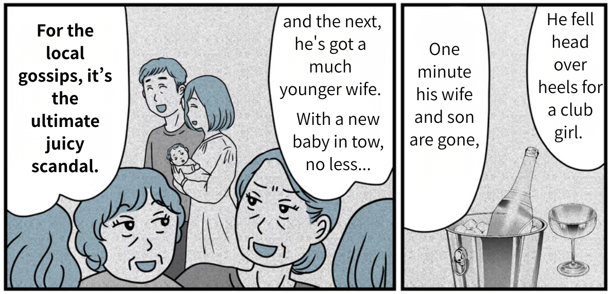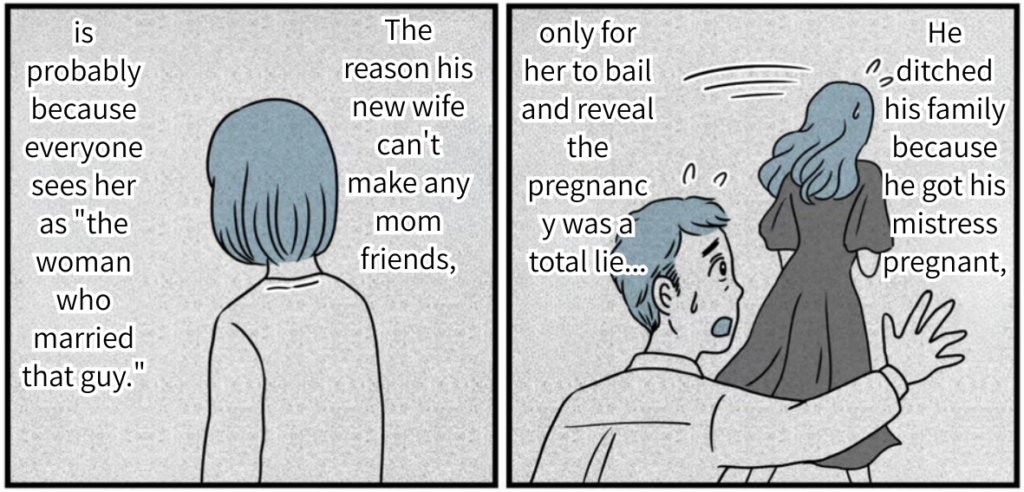 He’s the idiot who dumped his wife and kid for a mistress who played him for a fool and bailed. A story that juicy spreads like wildfire on its own, especially in a town like this. The reason his wife is struggling and getting dirty looks from the neighbors is simply because she married him. People just assume she’s the same kind of trash he is. From the way he’s talking, she probably has no clue about the real drama behind our divorce. I almost feel a little sorry for her. But I’m not nearly bored enough to go out of my way to play “good Samaritan” and fill her in. They can figure out their own messes together.