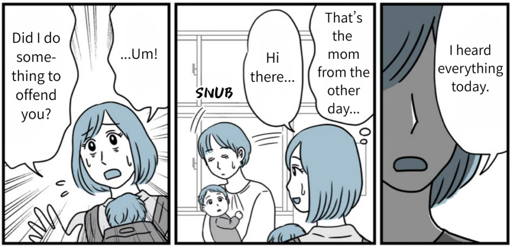 I’m Alisa, 25. After marrying my husband, Takaaki, 35, I moved to his hometown. He’s a divorcee, and his ex-wife and son live right here in the same town. I started heading to the local community center with my 6-month-old daughter, Ayane, hoping to make some “mom friends.” But for some reason, everyone avoids me. Even the neighbors have stopped returning my greetings lately. I spent so much time beating myself up, wondering, “What’s wrong with me?” but then…