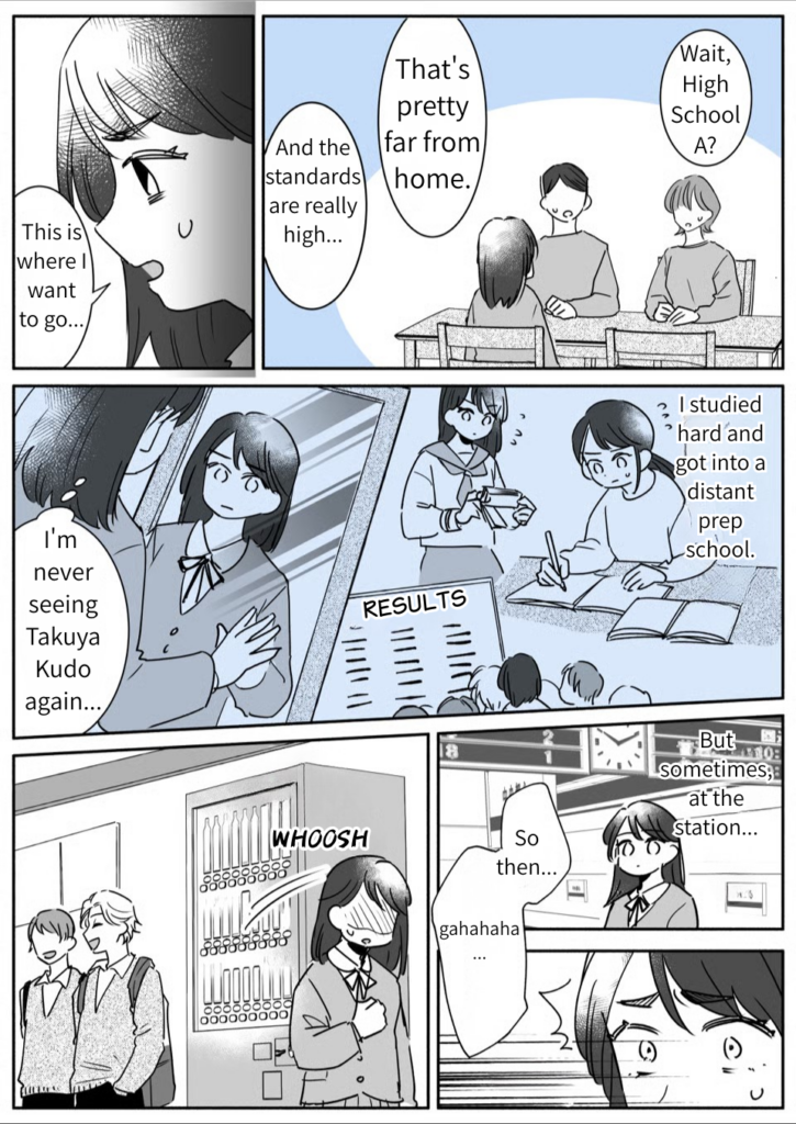 But every once in a while, if I heard a voice at the station that sounded like his, my heart would start racing and I’d reflexively brace myself. I couldn’t stop praying for just one thing: to live in a world where Takuya Kudo didn’t exist.
