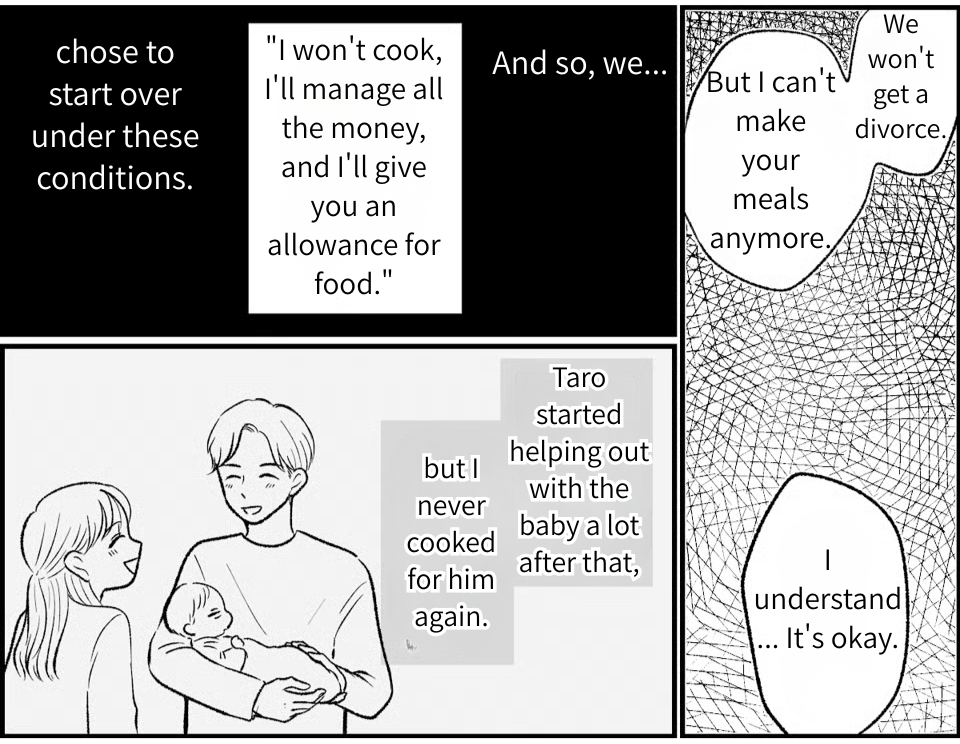 Right after we got hitched, I found out I was pregnant. I decided to trade in my career to be a stay-at-home mom, but that’s when everything fell apart. I discovered my husband, Taro, was having an affair—and it had been going on for nearly a year. He eventually ended things with her, but I just couldn’t find it in me to forgive him. And that’s how we ended up here…