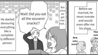 I’m Kanami. Thanks to Kippei’s habit of devouring everything in sight, the atmosphere at our dinner table is always toxic. Even when I call him out for fishing all the meat out of the curry, he just laughs it off and won’t stop. He wasn’t like this before we got married… Seeing him act like a completely different person makes me feel so empty and pathetic. I can feel my love for him fading more and more every day. Then, I found it—the snack Ayumu had been looking forward to, bought with his own allowance. It was empty before he’d even had a single bite. Don’t tell me… Kippei didn’t actually eat it, did he?