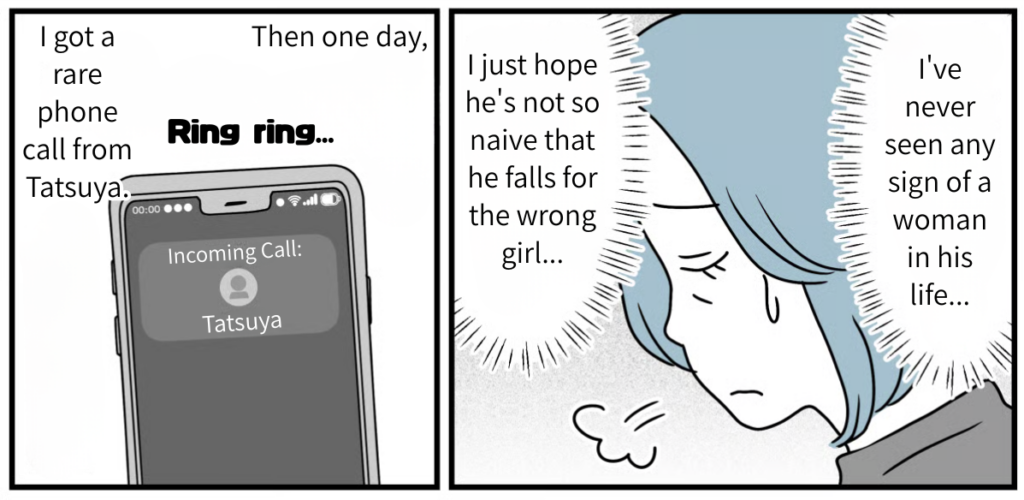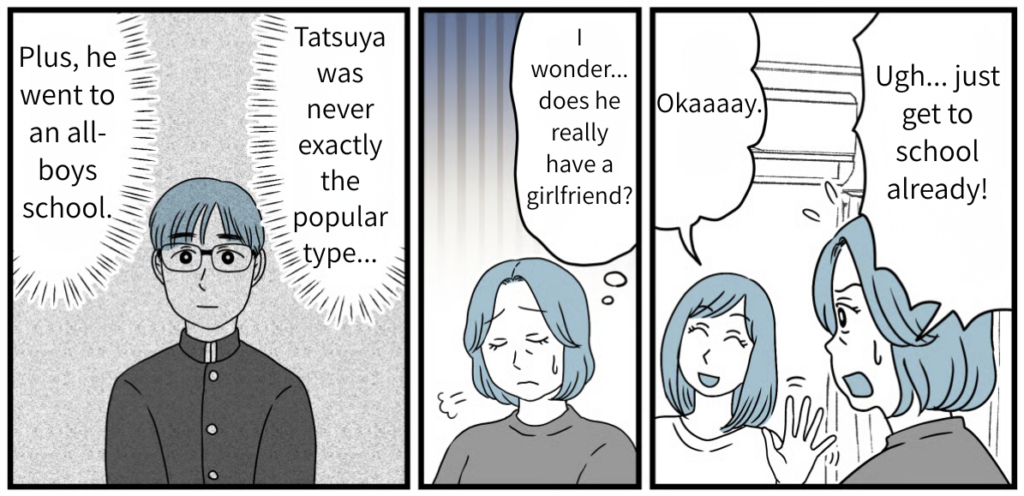 Tatsuya never had a thing going on with girls. I’d never even heard a whisper about him dating anyone. So, of course, this was the first time he’d ever said, “There’s someone I want you to meet.” The girlfriend he brought home seemed like a perfectly lovely person, but…