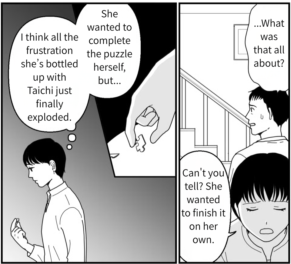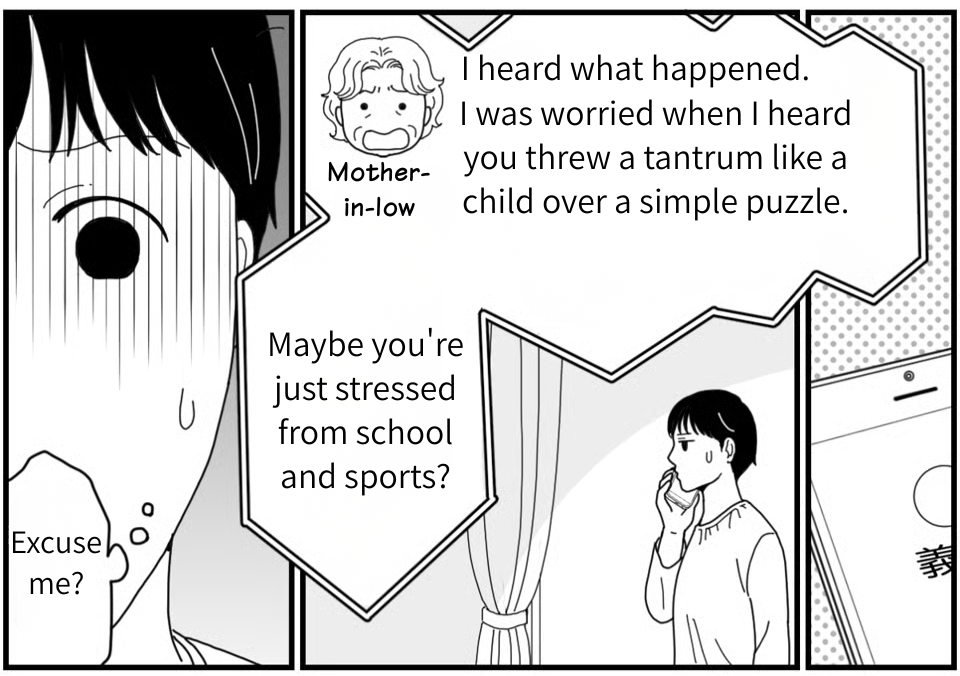 Yet, my mother-in-law acted like Akane was just being “sensitive,” saying it was “just a puzzle.” She even suggested that Akane is stressed because we’re pushing her too hard with school and sports… Like, is she blaming me? I was absolutely speechless at how one-sided she was in defending Taichi.